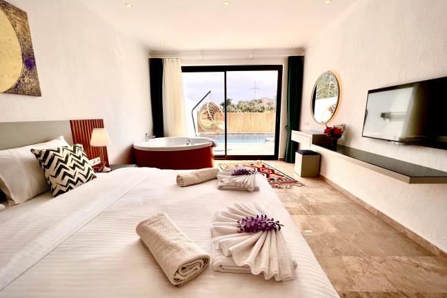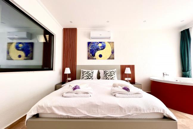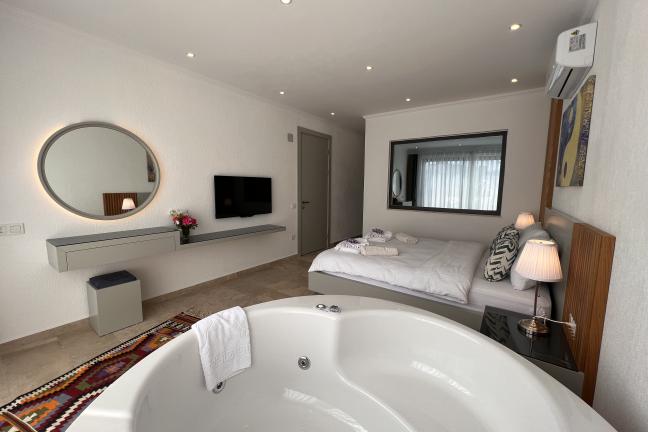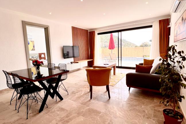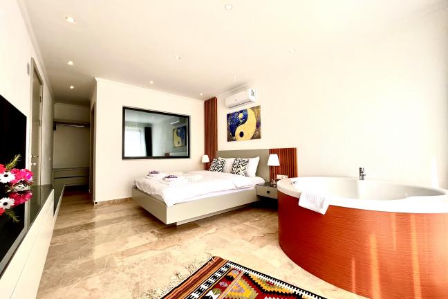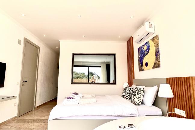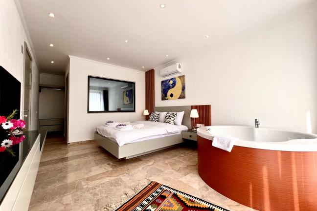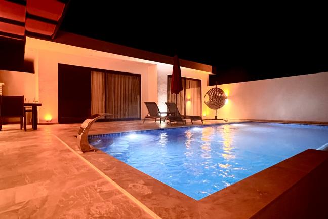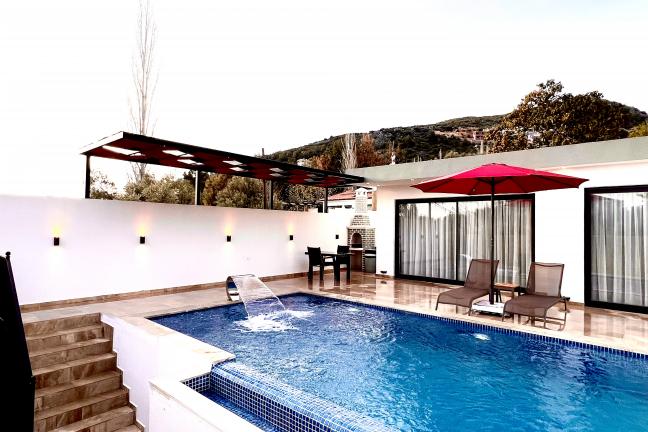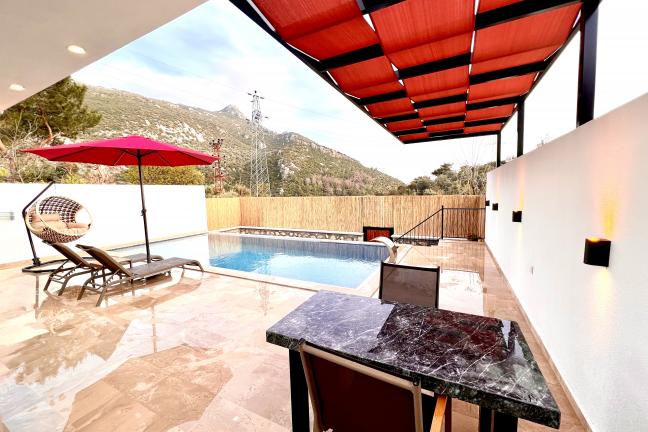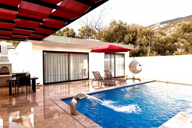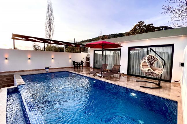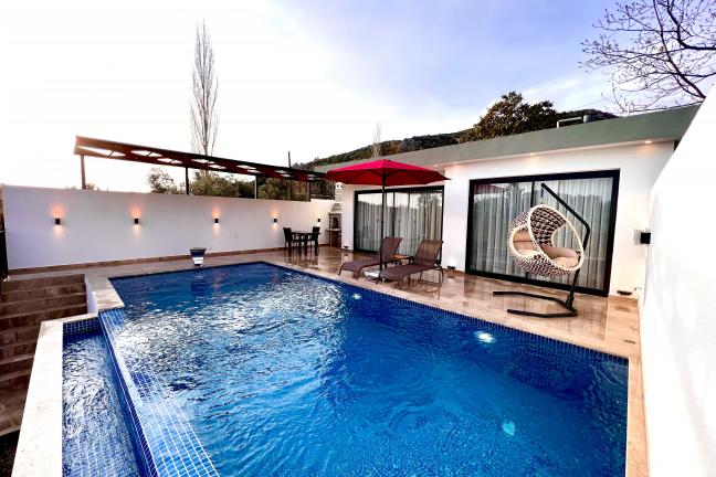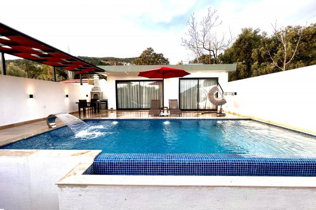 Villa Gala Mini, Kalkan İslamlar Köyü’nde doğa içinde harika bir konuma sahip kiralık balayı villasıdır. Şehrin karmaşasından ve rahatsız edici gözlerden uzakta bir balayı tatili için Villa Gala Mini ideal bir seçimdir. Şık ve modern dekorasyonu, özel yüzme havuzu, terasındaki salıncağı ve keyifli jakuzisi ile harika bir balayı tatili fırsatı sunar. Havuzu ve terası dışarıdan görülmeyen villamız gözlerden uzakta tatil yapmak isteyenler ve muhafazakar çiftler için oldukça uygun bir seçenektir.