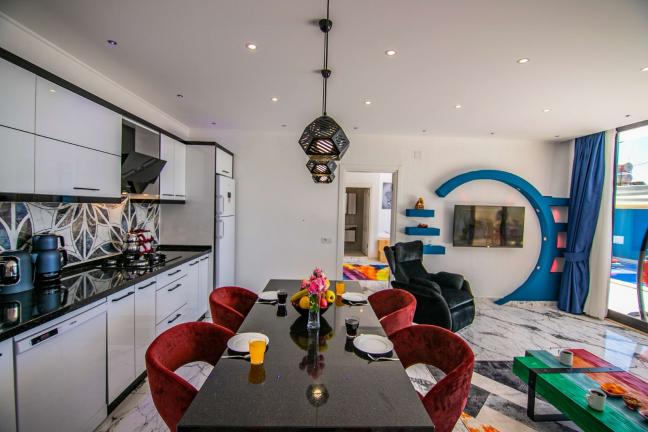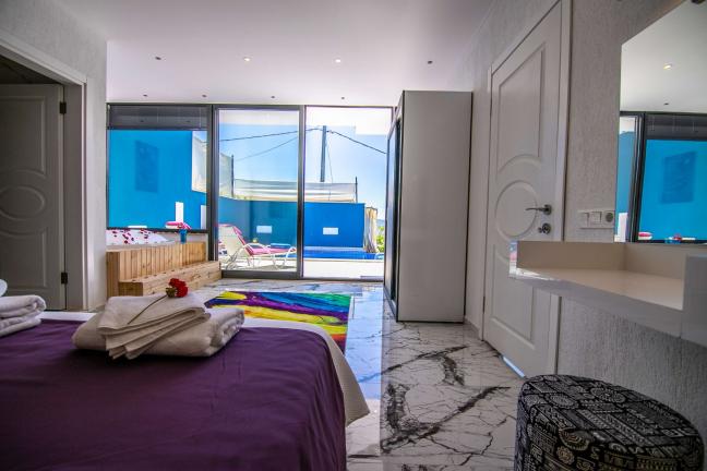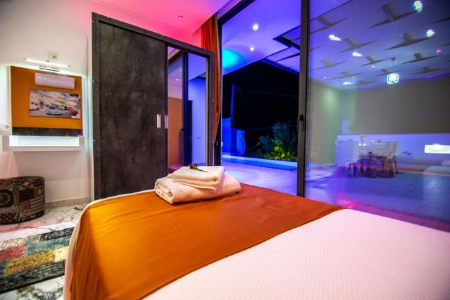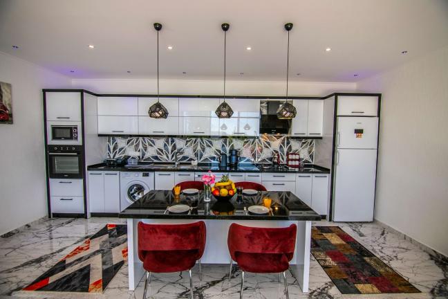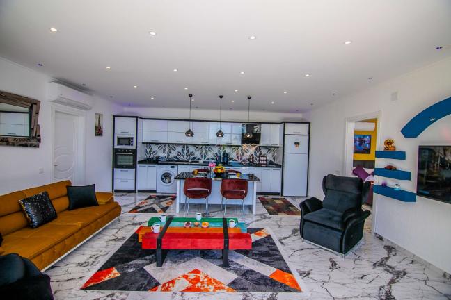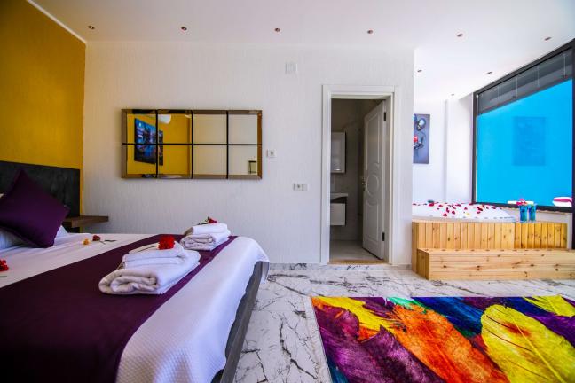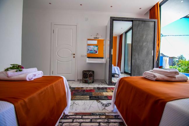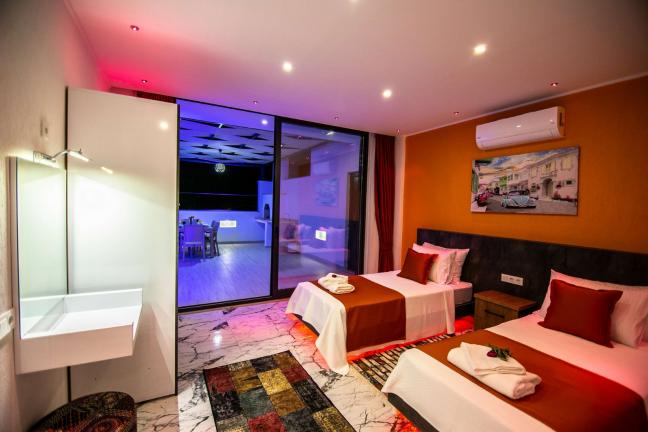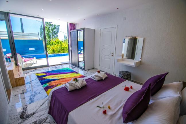 Villamızın içerisinde iki adet yatak odası ve iki adet banyo bulunmaktadır. Birinci yatak odası içerisinde çift kişilik yatak, klima, banyo ve jakuzi yer almaktadır. İkinci yatak odasında iki adet tek kişilik yatak, klima ve banyo bulunmaktadır. Salon kısmında mutfak, klima ve televizyon yer almaktadır.