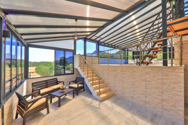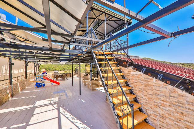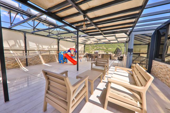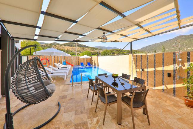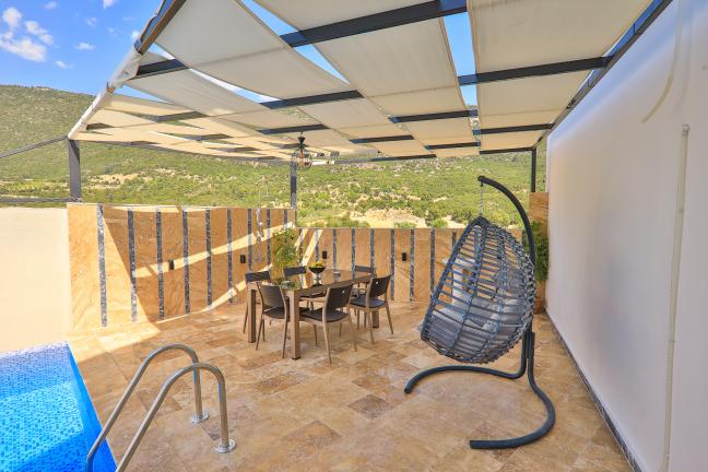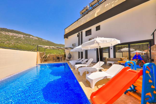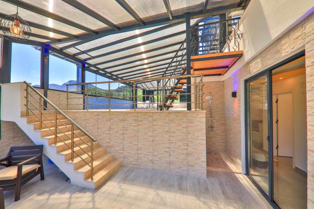 Villa Esinti, Kalkan İkizce bölgesinde yer alan 5 yatak odalı 10 kişi kapasiteli saunalı, size özel lüks kiralık villamızdır. Villamızın havuz alanı korunaklı olup muhafazakar ailelerimiz için ideal bir seçim olacaktır. Doğa içerisinde şehrin gürültüsünden ve kalabalığından uzak villamız geniş aileler ve kalabalık arkadaş grupları için ideal bir seçim olabilir. Villamız 3 katlı olup en alt katında villa güvenliği ve ihtiyaçlarını sağlamak adına görevli aile oturmaktadır. Villamız en alt katı ile girişleri bağımsızdır. Villamız da 1 adet sauna,2 adet mutfak, jakuzi ve kapalı havuz bulunmaktadır. Size özel havuzu, jakuzisi ve saunası sayesinde tüm yılın vermiş olduğu yorğunluğu üzerinizden atabilecek aileniz ile keyili bir tatil imkanı bulabileceksiniz. Eksiksiz araç-gereçli şık dizaynlı villamıza siz değerli misafilerimizi beklemekteyiz.