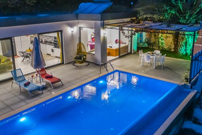 Villa Bozo 1, 2 kişilik konaklama kapasitesine sahiptir. 1 yatak odası,1 yatak ve 1 banyosuyla, misafirlerine geniş ve konforlu bir yaşam alanı sunar. Modern ve şık bir dekorasyonla donatılmış olan bu villa, tatiliniz boyunca evinizin rahatlığını aratmayacak.