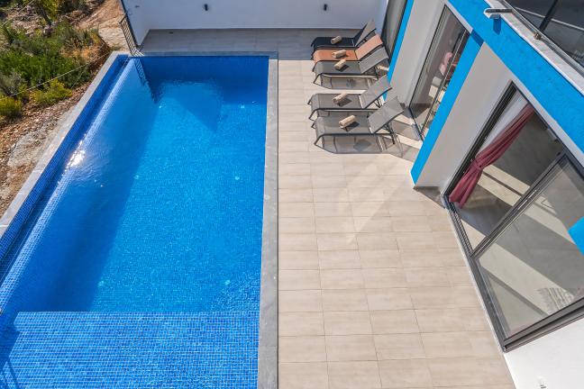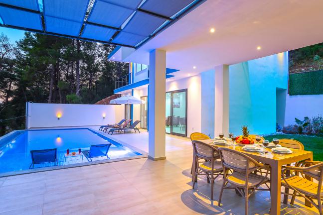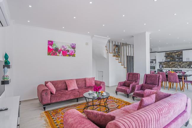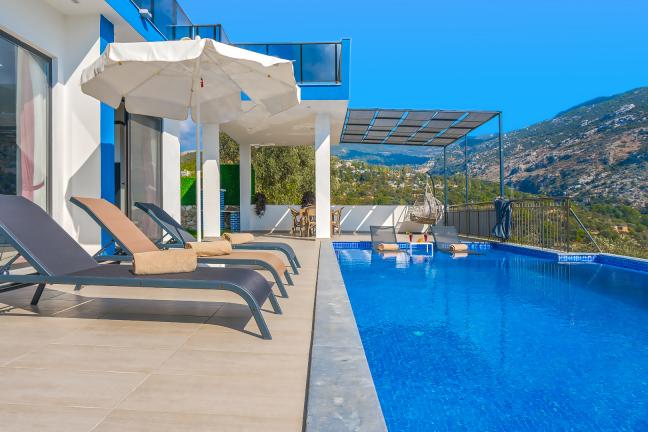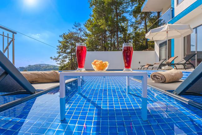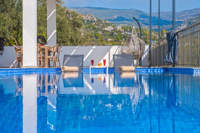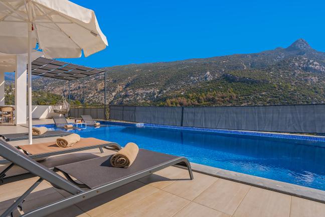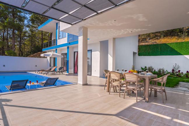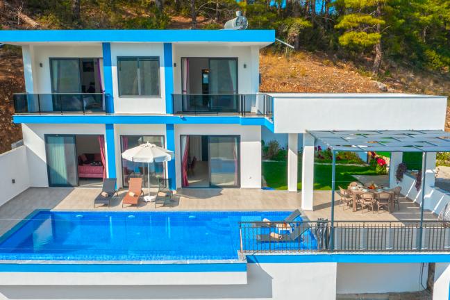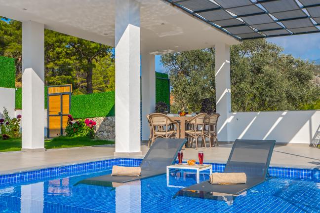 Villamızın genel konsept ve özelliklerinden tekrar bahsedecek olursak; villamızın 1 adet müstakil özel havuzu bulunmaktadır. Ortalama bir bahçeye sahip olan villamız rahatlığı ön planda tutan 2 adet yatak odası, 3 yatak, 2 banyo, hareket alanı geniş bir mutfak ve 4 kişinin geniş aralıklarla rahatlıkla oturabileceği koltuklara sahip salonu bulunmaktadır.