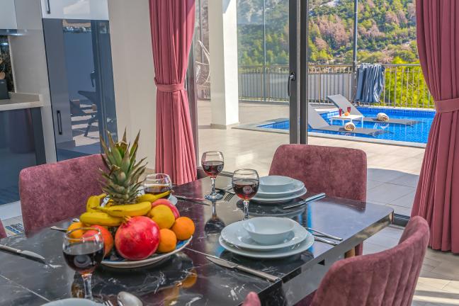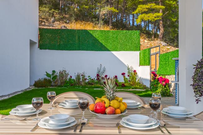 Yemek Masası ve bahçe mobilyaları kullanımınız için hazır bulunmaktadır sevdikleriniz ile beraber yemekler yiyip sohbetin dibine vurabilirsiniz. Villanın bahçesindeki salıncak ile keyifli vakitler geçirebilirsiniz.