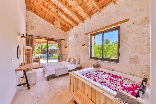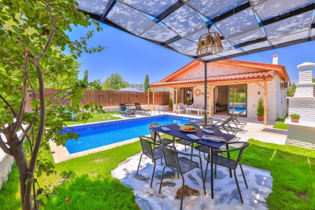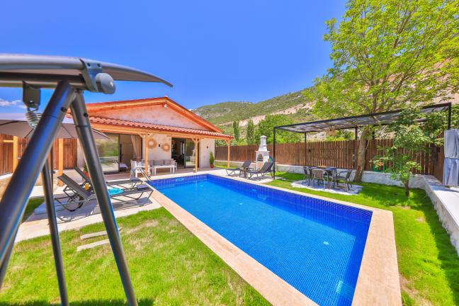 Villa Samas, Kalkan Bezirgan Bölgesinde , 2 yatak odali ve 4 kisi kapasiteli, jakuzili balayi villasi. Villamizin havuz alani korunakli olup, yemyesil bir bahçeye sahiptir. Doga içerisinde sessiz, sakin , sehir kalabaligindan uzak bir tatil imkani sunmaktadir Villa Samas, ana yatak odasinda jakuzi bulunan villamiz Kalkan sehir merkezine 15 dakikalik sürüs mesafesindedir. Oldukça konforlu ve modern dizayn edilmis olup ihtiyaciniz olan her seye sahiptir. Muhafazakar, çekirdek aileler, balayi çiftleri için ideal seçim olacaktir, size sadece tatilin tadini çikarmak kaliyor.