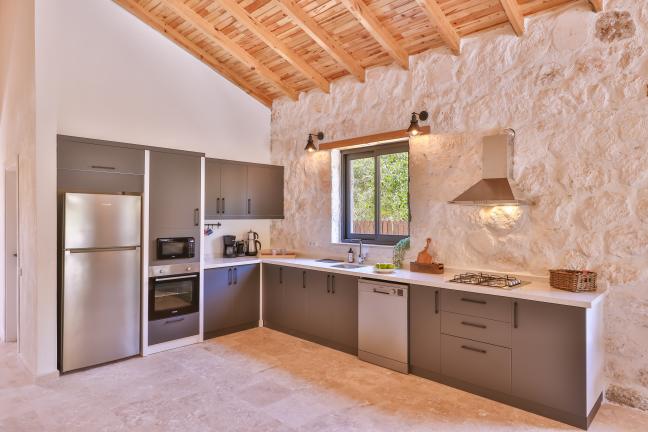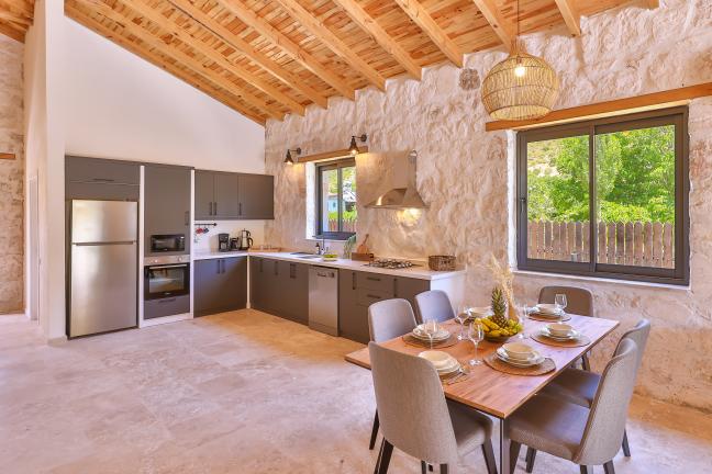 Modern Amerikan mutfakta buz dolabi, bulasik makinasi, 4'lü ocak, firin, mikrodalga firin, ekmek kizartma makinasi, kettle, 4 kisilik yemek masasi, yemek takimlari, çatal ve biçak takimlari, tencere ve tava takimlari, bardaklar bulunmaktadir.