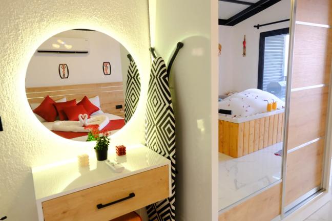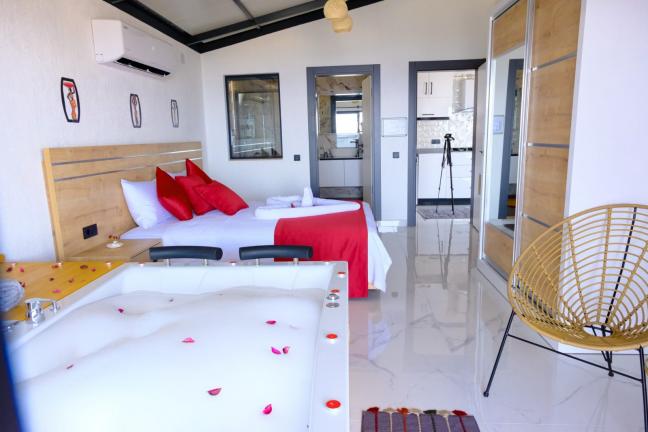 Berk Suit; Kalkan Kördere mevkiide bulunan deniz manzaralı 1 yatak odalı 2 kişi konaklama kapasiteli jakuzili balayı suitidir. Suitimizde büyüleyici bir deniz manzarasına sahip oldukça şık bir teras bulunmaktadır. Modern eşyalar ile lüks bir şekilde tasarlanan suitimiz kalkan merkeze oldukça yakın bir konumda olup çekirdek aileler ve balayı çiftleri için oldukça ideal bir seçenektir.