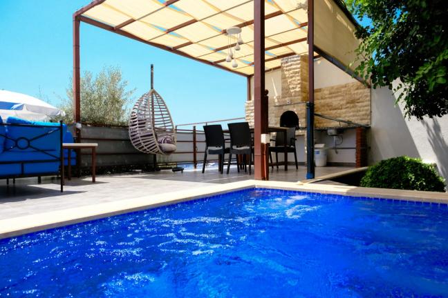Bahçe: Özel yüzme havuzu, şezlong, şemsiye, oturma grubu, salıncak, yemek masası ve barbekü bulunmaktadır.