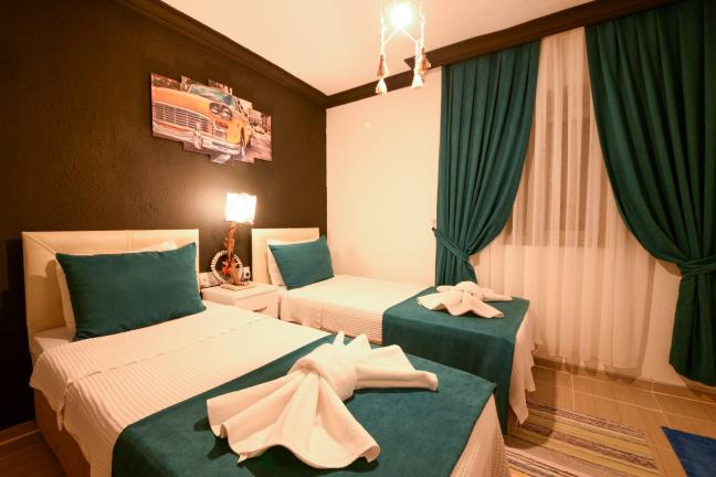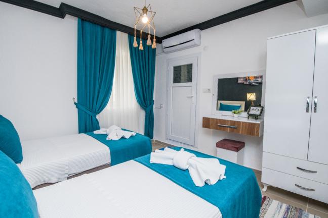 2.Yatak Odası:İki adet tek kişilik yatak, komodin, elbise dolabı, klima, banyo ve tuvalet bulunmaktadır.