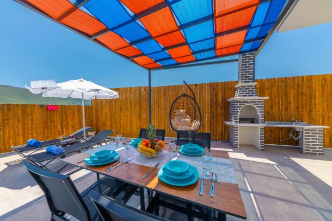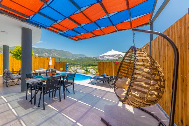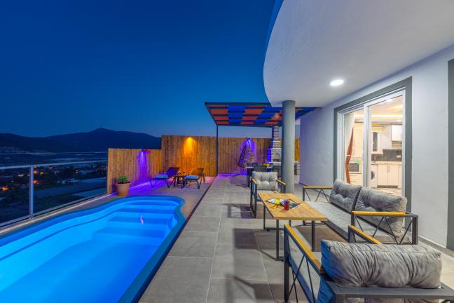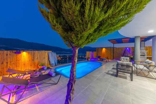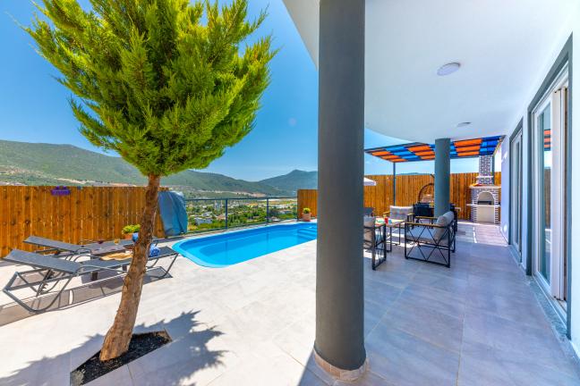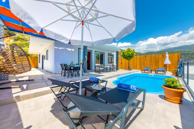 Kalkan Yeşilköy de konumlanmış, kiralık balayı villası huzurlu ve konforlu bir tatil isteyen balayı çiftlerimiz ve çekirdek aileler için en ideal seçeneklerden bir tanesidir. 2 yatak odası ile 4 kişiye kadar konaklama imkanını sizlere sunmaktadır. Ebeveyn odasındaki jakuzisi de misafirlerimize ekstra rahatlama imkanı sunuyor. Villa Tuana konforlu, doğa manzaralı, çocuk oyun alanı ve özel havuzu ile ideal seçeneklerden bir tanesidir. Villamız; Balayı villası ve muhafazakar villalar kategorisinde yer almaktadır. Havuzu korunaklı (Havuzun dışarıdan gözükmediği anlamına gelir) özelliği ile mahremiyete önem veren misafirlerimiz için tatil imkanı sunmaktadır.