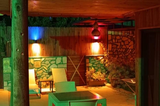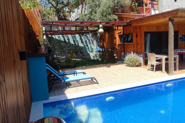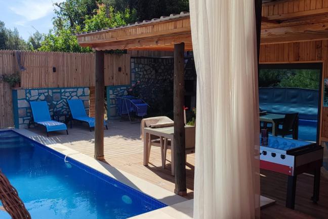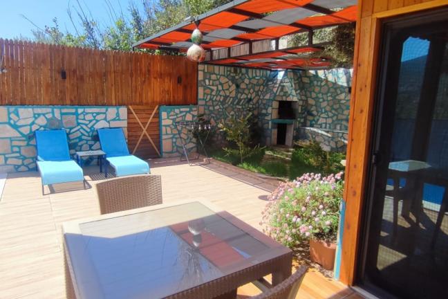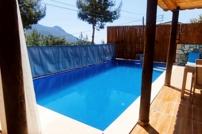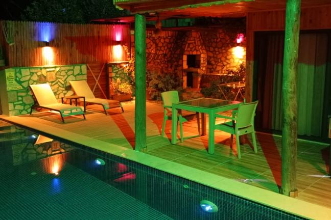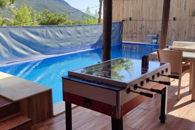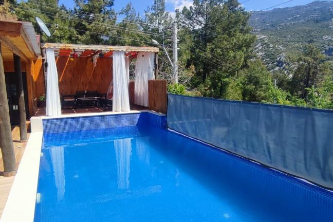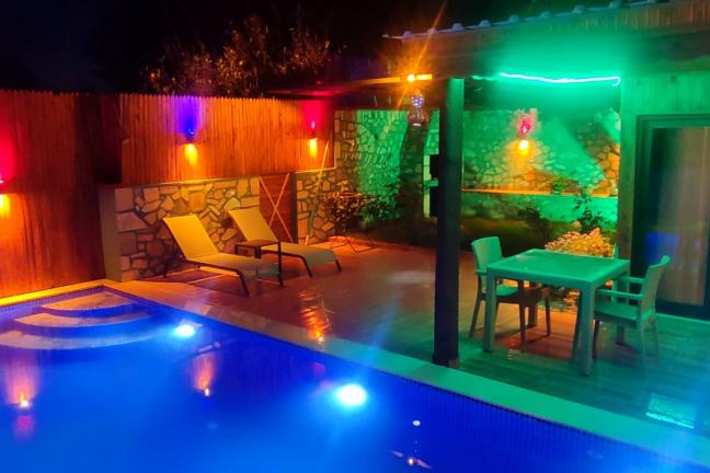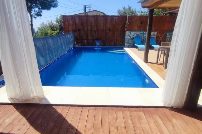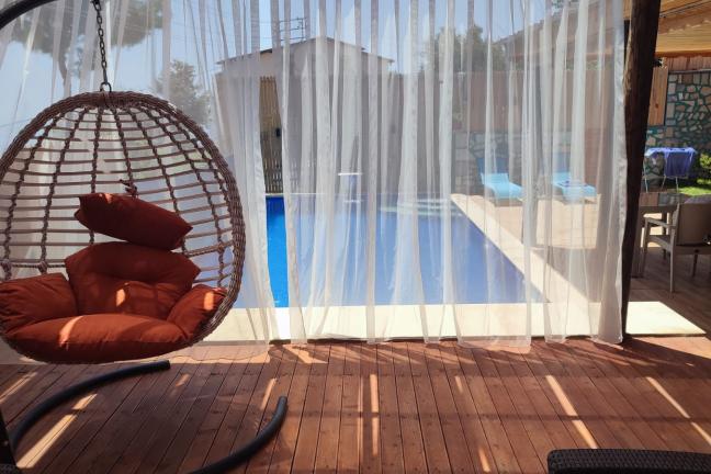 Doğa manzaralı kiralık balayı villası Rainbow Ahşap, deniz ve plaja 5 km uzaklıkta bulunmaktadır. Ancak villanın kendine ait havuz ve bahçesi mevcuttur. Burada dilediğiniz gibi vakit geçirebilirsiniz. Gözlerden ve kalabalıktan uzakta bahçedeki şezlonglarda rahatça güneşlenebilir, havuzun tadını çıkarabilirsiniz, eşinizle baş başa bahçede hoşça sohbetler edebilirsiniz. Sadece doğanın sesi ve mutluluk ile. Villa Rainbow Ahşap muhafazakar kiralık balayı villası olduğu için burada muhafazakar balayı tatili de yapabileceksiniz. Tüm özellikleri ve detayları ile sizlerin rahatlığı ön planda tutularak hazırlanmış olan villadan ayrılmak istemeyeceksiniz. Romantik akşam yemekleri için bahçedeki barbeküyü kullanabilir, havuz başında rahatça yiyebilirsiniz. Hoş anlar mutluluk yüklü bir tatil için.