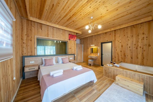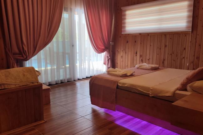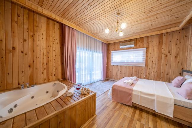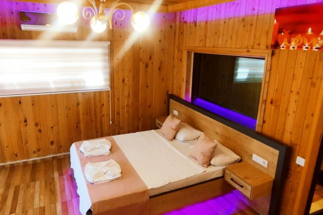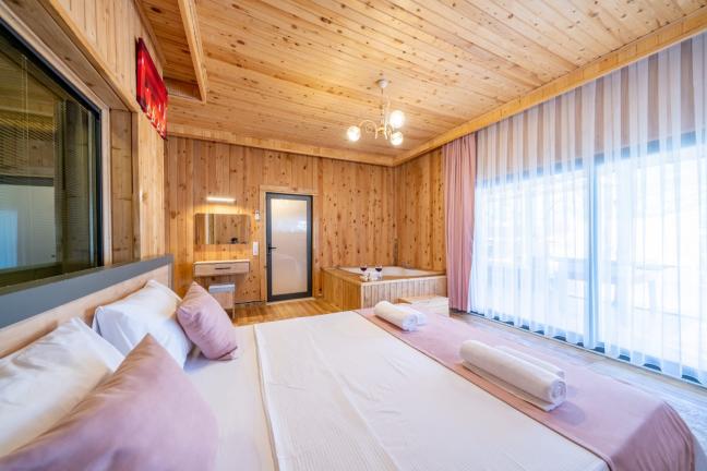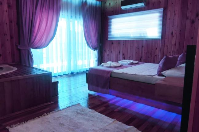 Detayları : Çift kişilik yatak, jakuzi, klima, komodin, elbise dolabı, makyaj masası, banyo ve lavabo bulunmaktadır.