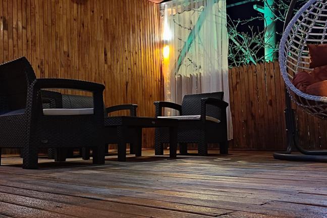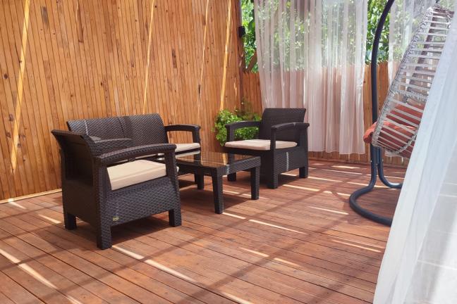 Detayları : Şezlong, güneşlenme şemsiyesi, barbekü, salıncak, yemek masası ve sandalyeleri bulunmaktadır.