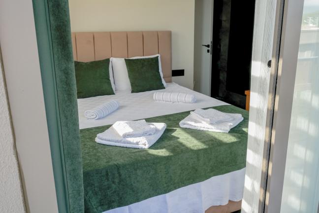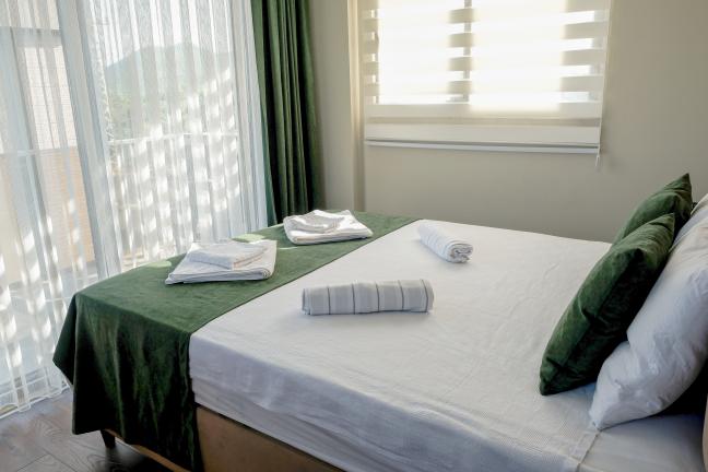 2. Yatak Odası: 1 Adet çift kişilik yatak, klima, elbise dolabı, komodin, tuvalet ve banyo bulunmaktadır.
