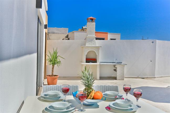Yemek masası ve rahat bahçe mobilyaları, villamızın bahçesinde sizin için hazırlandı. Bu eşsiz ortamda sevdiklerinizle unutulmaz anlar yaşama fırsatını yakalayabilirsiniz.