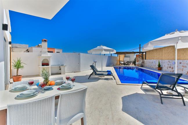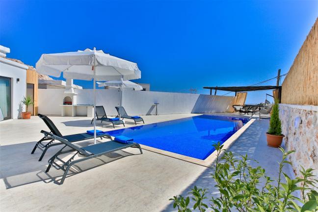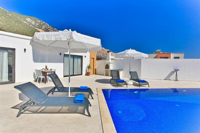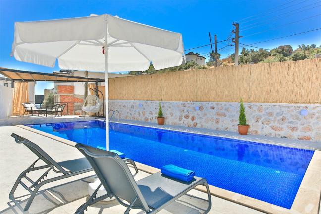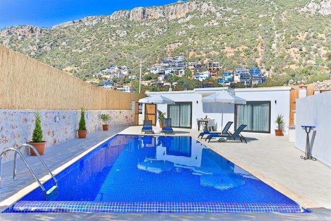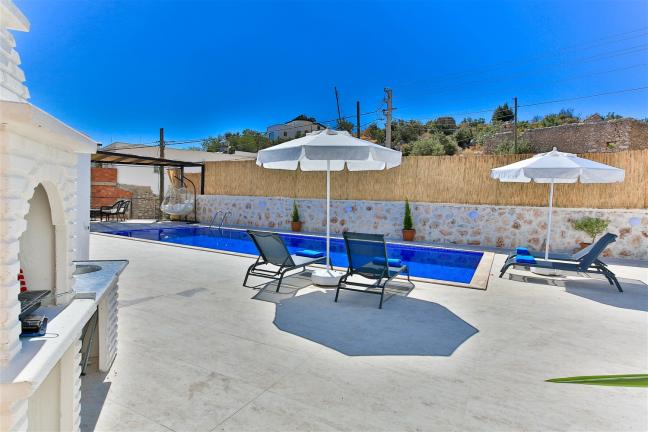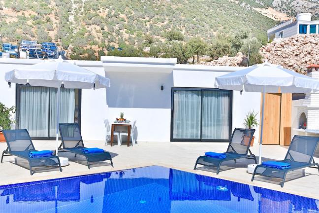 Villamızın genel konsept ve özelliklerinden tekrar bahsedecek olursak; villamızın 1 adet müstakil özel havuzu bulunmaktadır. Ortalama bir bahçeye sahip olan villamız rahatlığı ön planda tutan 2 adet yatak odası,3 yatak,2 banyo, hareket alanı geniş bir mutfak ve 4 kişinin geniş aralıklarla rahatlıkla oturabileceği koltuklara sahip salonu bulunmaktadır.