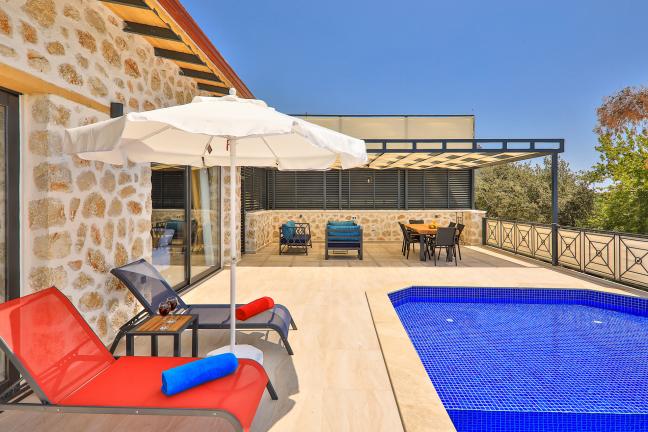 Villa Kırlangıç, Kalkan’ın İslamlar Köyü’nde bulunuyor. Şehrin gürültüsünden ve kirliliğinden uzak doğa içinde keyifli bir tatil isteyen çiftlerimiz ve ailelerimiz için oldukça uygun bir seçenektir. Muhafazakar villalar ve balayı villaları kategorisinde yer alan villa Kırlangıç, 2 yatak odası ile 5 kişilik konaklama kapasitesine sahiptir. Havuzu korunaklı ve bahçesi dışarıdan görünmeyen Kiralık Villa Kırlangıç, mahremiyete önem veren çiftlerimiz ve ailelerimiz için huzur dolu bir tatil fırsatı sunuyor.