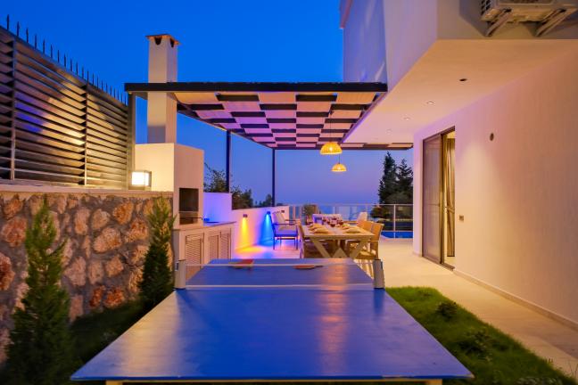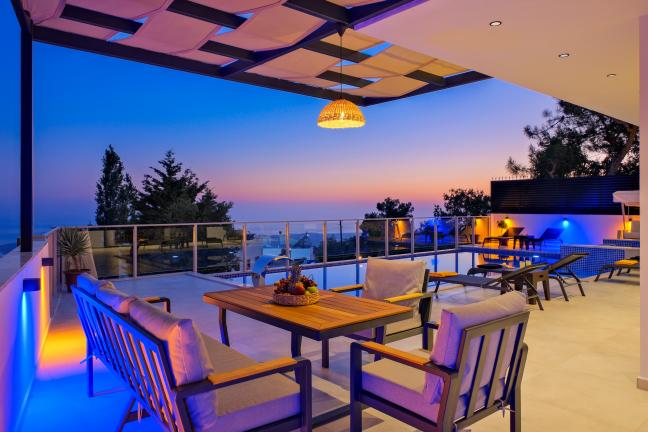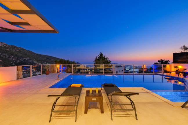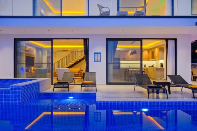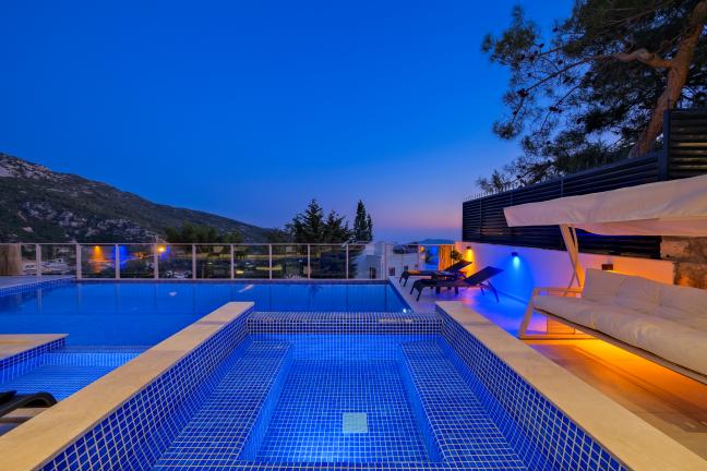 Kalkan İslamlar mevkiinde bulunan olağanüstü bir doğa manzarasına sahip Villa Dolce Deluxe, 3 yatak odası ile 6 kişilik kapasiteli aileler, balayı çiftleri ve muhafazakâr aileler için ideal villalarımızdandır. Korunaklı havuzu bulunan villamızda bir yatak odası jakuzilidir, doğa ile iç içe, sakin bir tatil hayal eden misafirlerimiz için en uygun villalarımızdandır. Villamızda extra olarak çocuk havuzu, langırt, masa tenisi, sauna bulunmaktadır.