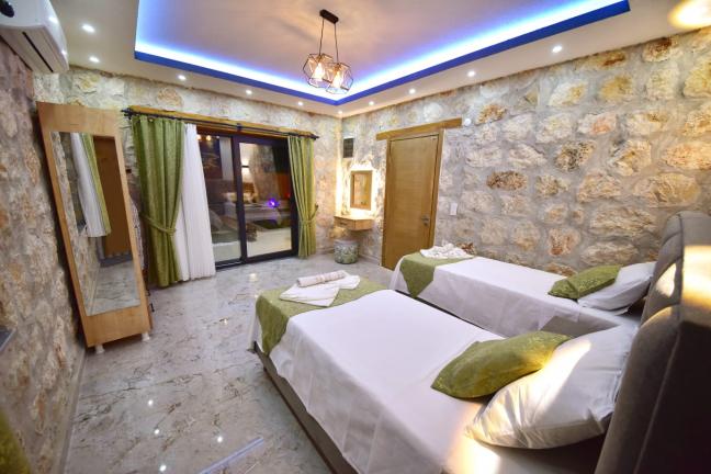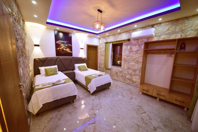 Yatak odası 2: 2 adet tek kişilik yatak, makyaj masası, klima, elbise dolabı, komodin, banyo ve tuvalet bulunmaktadır.