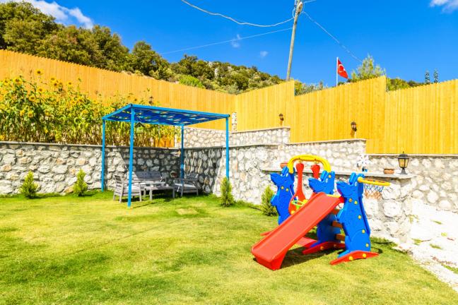 Yemek Masası ve bahçe mobilyaları kullanımınız için hazır bulunmaktadır sevdikleriniz ile beraber yemekler yiyip sohbetin dibine vurabilirsiniz. Villanın bahçesindeki salıncak ile keyifli vakitler geçirebilirsiniz.