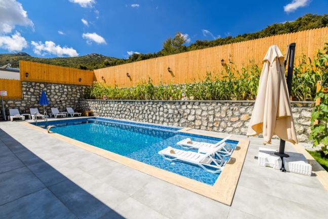 Villamızın genel konsept ve özelliklerinden tekrar bahsedecek olursak; villamızın 1 adet müstakil özel havuzu bulunmaktadır. Ortalama bir bahçeye sahip olan villamız rahatlığı ön planda tutan 3 adet yatak odası,5 yatak,3 banyo, hareket alanı geniş bir mutfak ve 6 kişinin geniş aralıklarla rahatlıkla oturabileceği koltuklara sahip salonu bulunmaktadır.