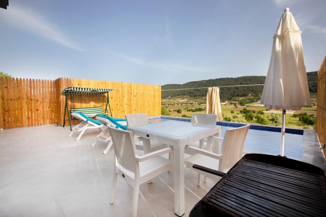Havuz terasında özel yüzme havuzu, şezlonglar, güneş şemsiyesi, masa ve sandalyeler, pergola, langırt, salıncak, barbekü bulunmaktadır.