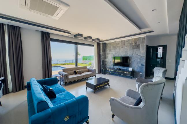 Tatil Cenneti Kaş - Kalkan da, bölgeye hakim bir tepe üzerinde konumlanmış, merkezi konumda muhteşem deniz ve doğa manzarasına sahip bu lüks villamız, gözlerden uzak unutulmaz bir tatil tecrübesi için siz değerli misafirlerimizi bekliyor. Villamız standartların üzerinde ferah kullanım alanlarının yanı sıra, özel yüzme havuzu, çocuk havuzu, kamera sistemi, özel bahçe, otopark alanı ve eşsiz deniz ve doğa manzarasına sahip tamamı suit 5 yatak odalı muhteşem bir villadır.