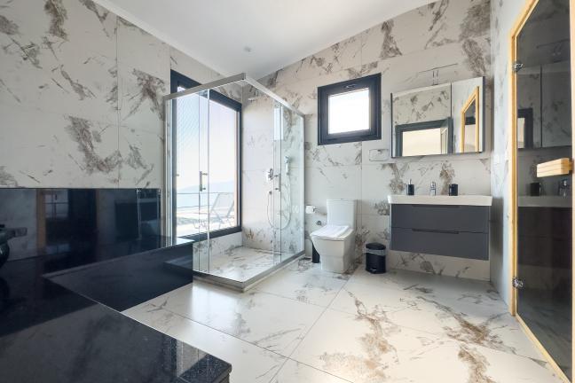 Detayları: Çift kişilik yatak, Elbise dolabı, Komodin, Klima, Giyinme odası, Deniz manzaralı balkon, Jakuzi, Sauna, Türk hamamı ve Balkonda oturma grubu mevcuttur.