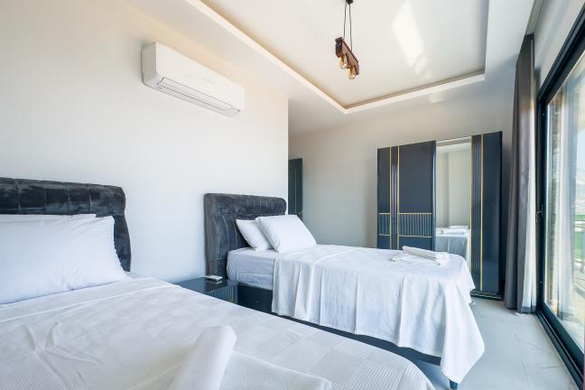 Detayları: 2 Adet tek kişilik yatak, Elbise dolabı, Komodin, Klima, Banyo, Deniz manzaralı balkon bulunmaktadır.