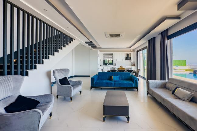 Tatil Cenneti Kaş - Kalkan da, çok özel bir lokasyonda, bölgeye hakim bir tepe üzerinde konumlanmış, merkezi konumda muhteşem deniz ve doğa manzarasına sahip bu lüks villamız, gözlerden uzak unutulmaz bir tatil tecrübesi için siz değerli misafirlerimizi bekliyor. Villamız standartların üzerinde ferah kullanım alanlarının yanı sıra, özel yüzme havuzu, çocuk havuzu, kamera sistemi, özel bahçe, otopark alanı ve eşsiz deniz ve doğa manzarasına sahip tamamı suit 5 yatak odalı muhteşem bir villadır. Villamız Kalkan merkeze 2 km ve denize ise 4 km mesafede yer almaktadır. Modern mimarinin en güzel örneklerinden biri olan bu villamız ; teras katında harika bir deniz manzarasına sahip olup, keyif dolu zamanlar geçireceğiniz oturma grubu mevcuttur. Teras katındaki suit aile yatak odasında 1 Adet jakuzi, sauna odası ve hamam bulunmaktadır. Villamız eşsiz manzarası, merkezi konumu, ayrıcalıklı mimarisi ve ferah kullanım alanlarıyla balayı çiftleri ve kalabalık aile grupları için ideal bir seçenektir.