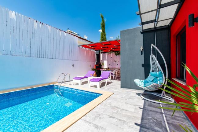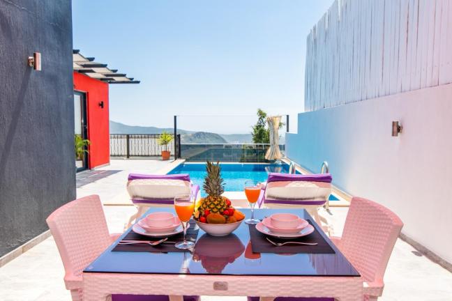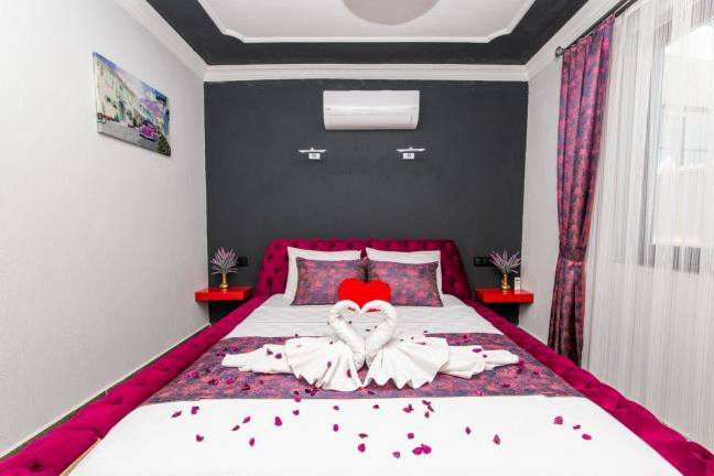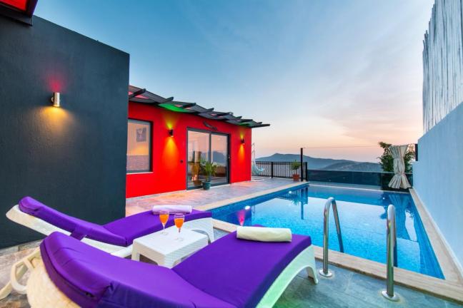 Kalkan Üzümlü mevkiinde yer alan tek yatak odalı jakuzili kiralık muhafazakar balayı villasıdır. Panoramik doğa ve Patara manzarasına karşı havuzun ve güneşin tadını çıkarabileceğiniz Villa Gece romantik bir balayı tatili için sizleri bekliyor. Sessiz sakin konumu ile gözlerden uzak tatil geçirmek isteyen muhafazakar çiftler ve balayı çiftleri için özel bir seçenektir. Kalkan şehir merkezine 10 km, Üzümlü Köy merkezine ise 1 km mesafededir.